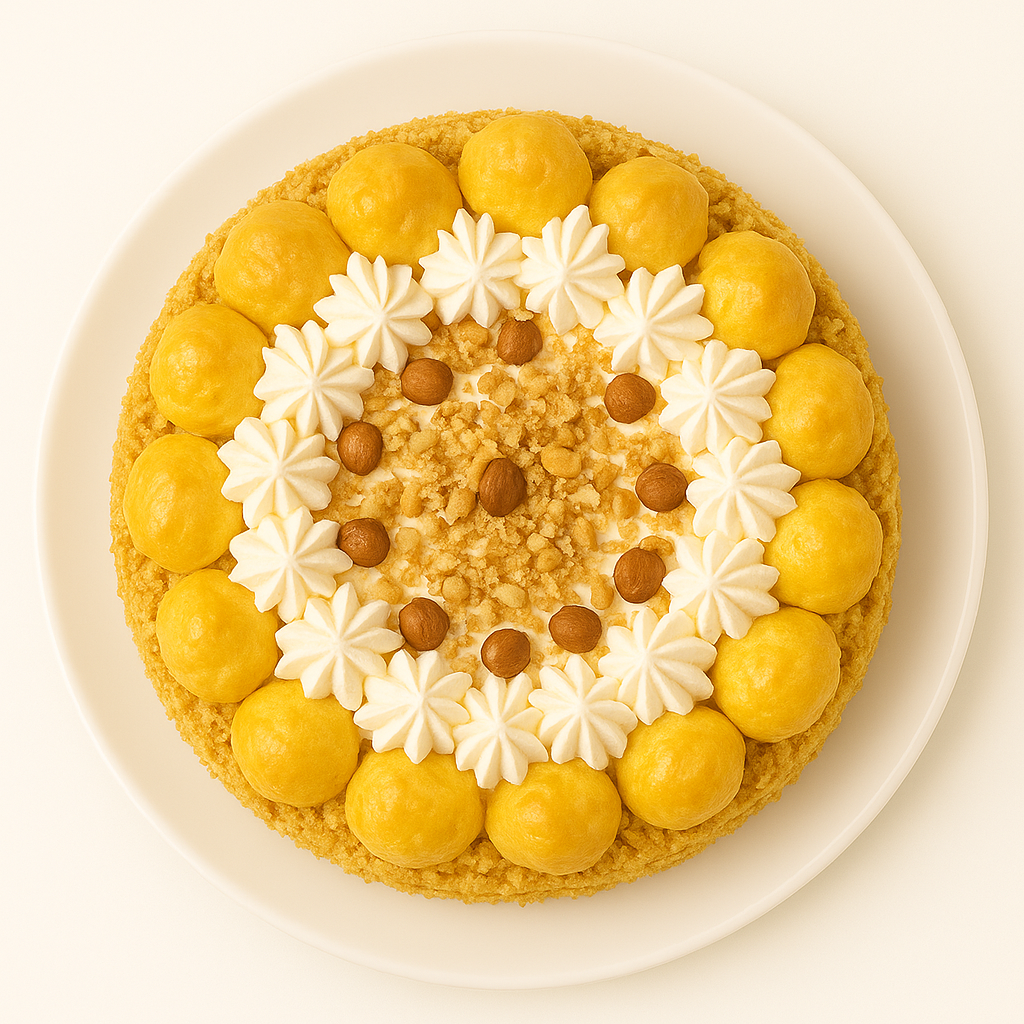 A delightful celebration of one of Italy's most cherished flavors, this Hazelnut Semifreddo combines the rich, nutty essence of premium hazelnuts with elegant frozen dessert craftsmanship. The dessert features carefully constructed layers of tender sponge cake that provide a light, airy foundation for the star ingredient - a luxurious hazelnut chantilly cream that delivers an intensely satisfying nutty flavor with a smooth, velvety texture.